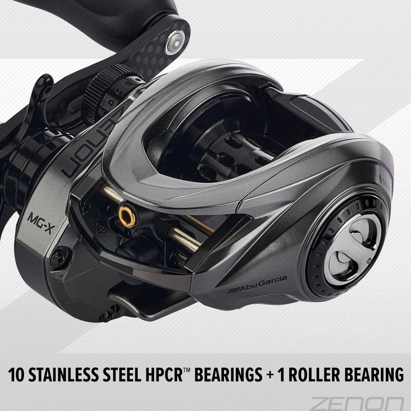 De nieuwe Zenon MG-X reel is een compacte baitcaster reel die niet alleen erg sterk is maar ook erg licht. Dankzij het eendelige X-Mag frame is de reel erg solide en zorgt het voor uitmuntende prestaties. De reel is voorzien van C6 carbon zijplaten waardoor de reel nog lichter is dan zijn concurrenten.