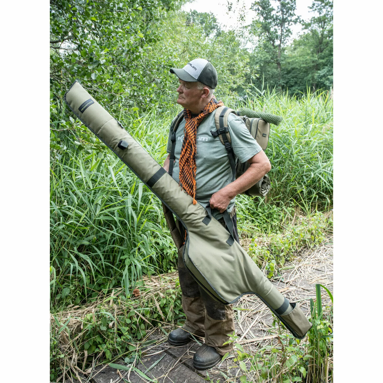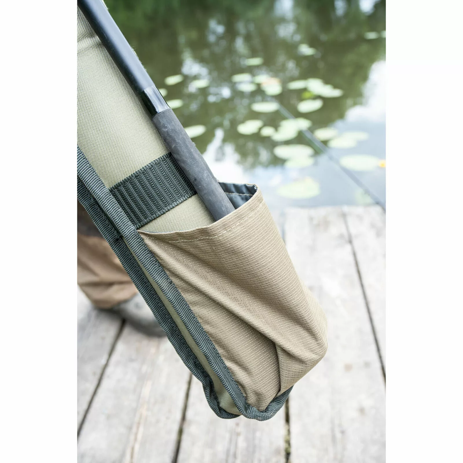 Met deze handige sling heb je nooit meer een probleem tijdens het vervoeren van je hengels. Door de grote vakken is het makkelijk om meerdere opgetuigde hengels mee te nemen. Door het handige handvat is de foudraal erg makkelijk mee te nemen. De foudraal heeft aan de buitenkant meerdere vakken waardoor je makkelijk een schepnet of extra hengels kan mee nemen. De foudraal is gemaakt van sterk polyster waardoor deze zeer lang mee gaat.
