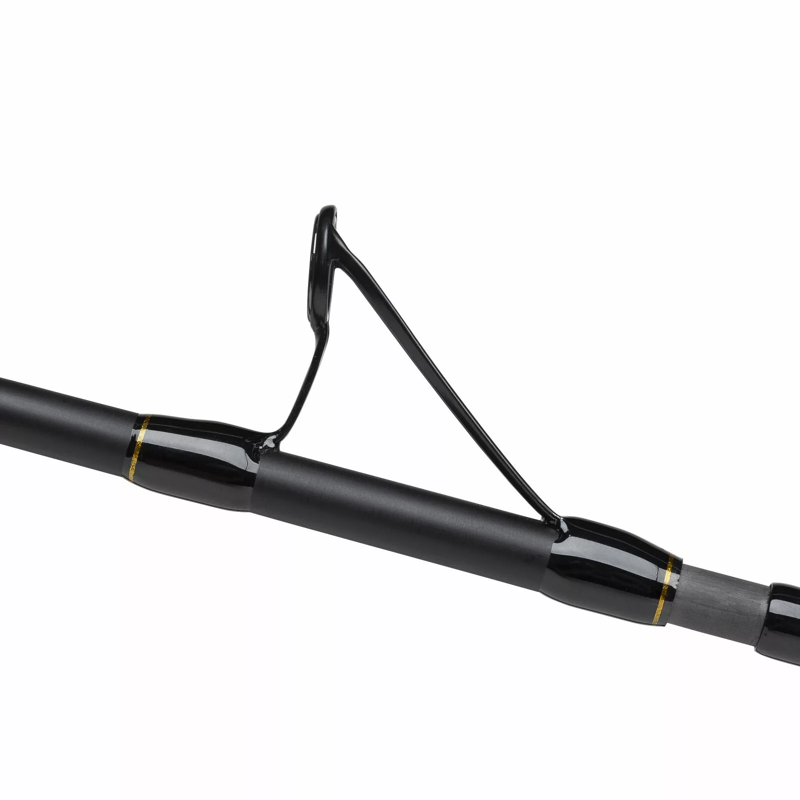 Deze hengel is gemaakt van een sterk carbon waardoor de hengel niet alleen licht van gewicht is maar ook een erg mooie actie heeft tijdens het drillen van een gehaakte vis. Door de krachtige backbone kun je veel kracht zetten op bijvoorbeeld een heilbot en deze goed onder controle houden als deze een run naar de diepte maakt. Deze hengel kan zowel met een mono als met een gevlochten lijn gevist worden dankzij de sterke geleideogen. Deze mooie hengels zijn verkrijgbaar in 3 verschillende modellen.
