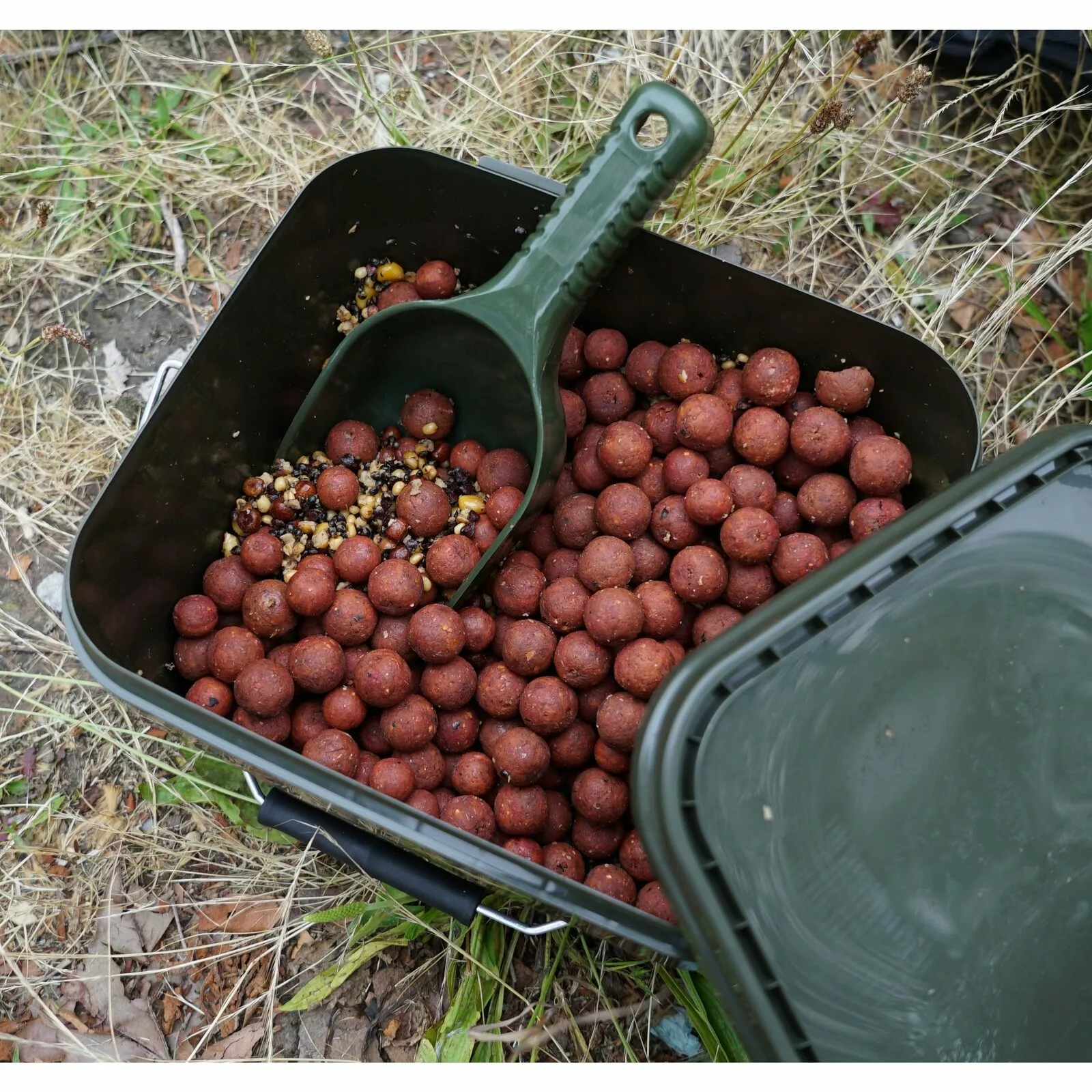 Een aasschep gemaakt voor het aanmaken van voermixen en het door scheppen van aas, boilies met soaks en liquids. De schep is gemaakt van een hoogwaardig kunststof materiaal dat zeer solide aanvoelt. Door de groeven in het handvat heb je met natte handen beter grip.